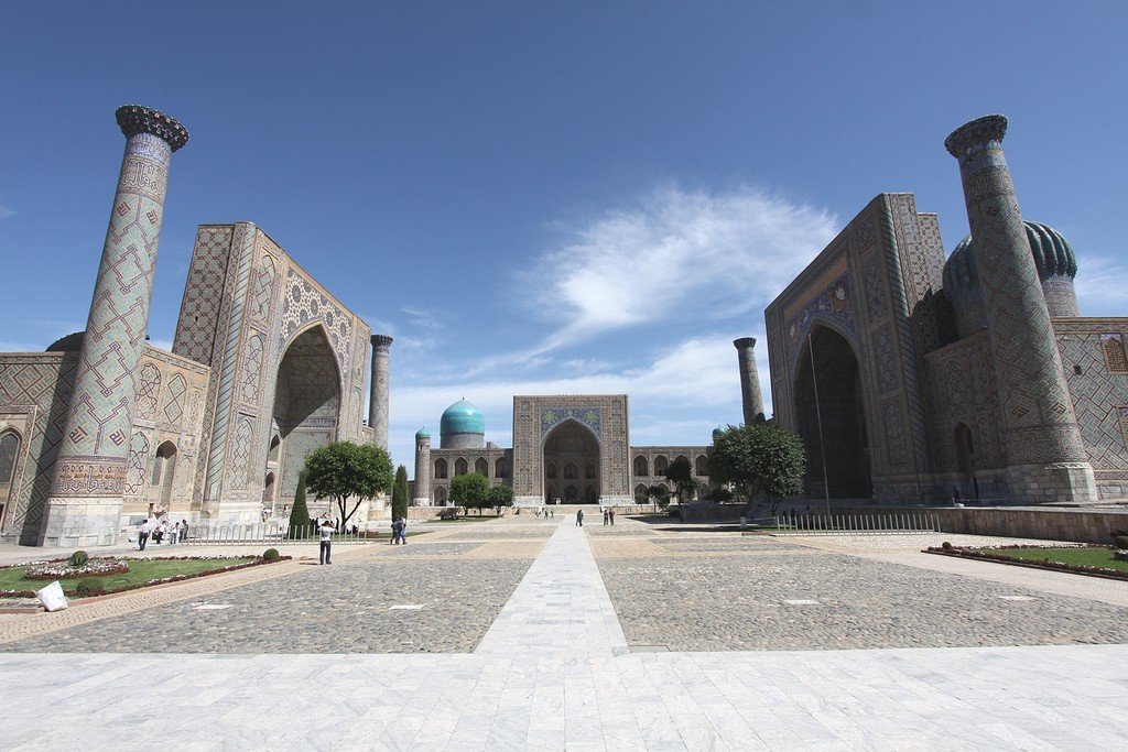 우루그벡 마드라사 Ulugbek Madrasah는 레기스탄 광장에서 최초의 기념비적 인 건물이되었습니다. 도시의 주요 광장의 앙상블은 17 세기에 세워진 쉐르도르 마드라사와 틸라카리 마드라사의 웅장한 구조로 조화롭게 보완되었습니다.레기스탄 광장의 건축 파노라마에는셰이바니드 왕조의 조상 묘소 (16 세기)와 15 세기에 세워져 200 년이 지난 후에 재건 된 6면 커버 처르수 시장이 포함됩니다. Chorsu는 2005 년에 복원되었으며 현재 미술관이 있습니다.