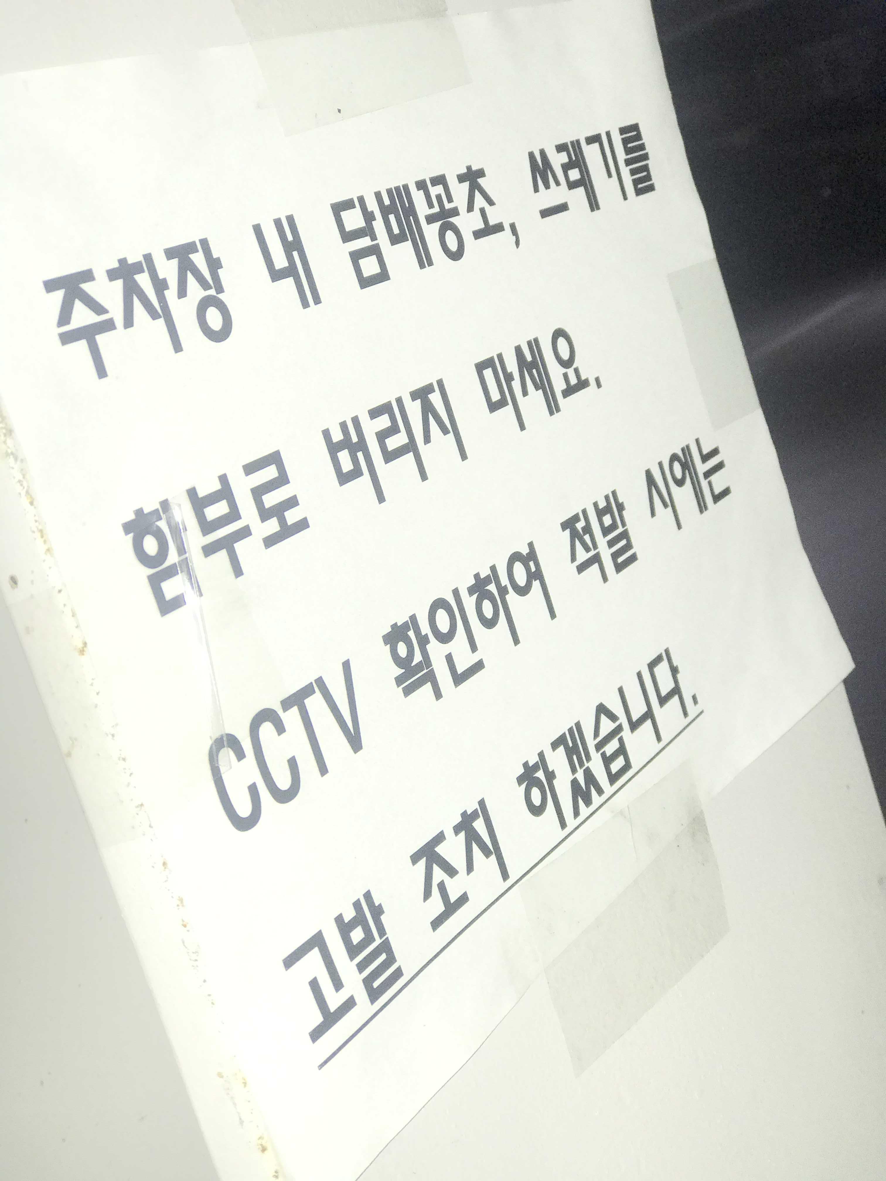 주차장에서 쓰레기를 버리는 건 당연히 안좋죠!이 안내문이 붙여있는데도 쓰레기를 버리는 사람들이 있더라고요.