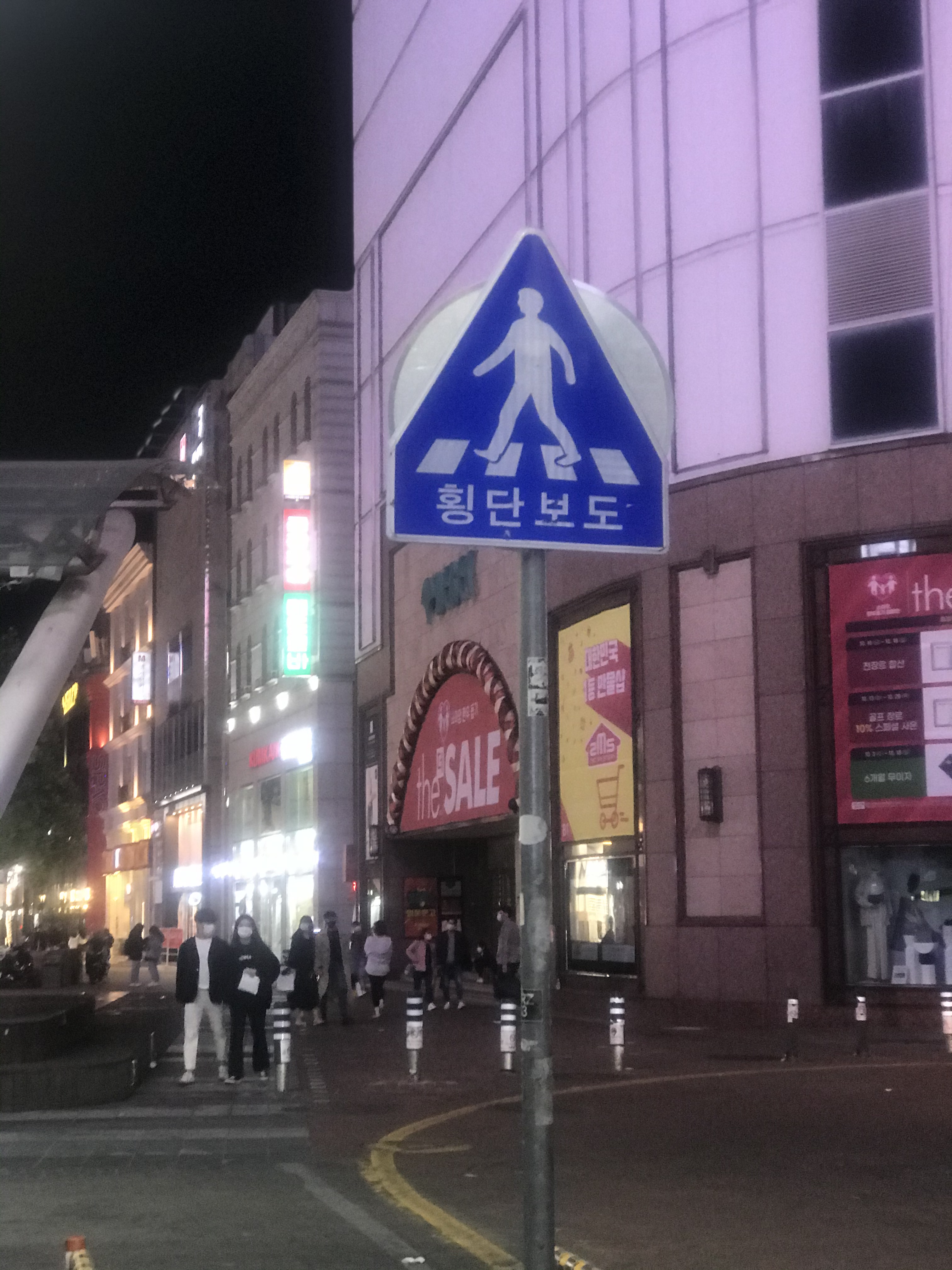 포트리트 모드로 한번 찍어봤어요 ㅎㅎ. 횡단보도 표지판에 강조를 하게 해봤어요.