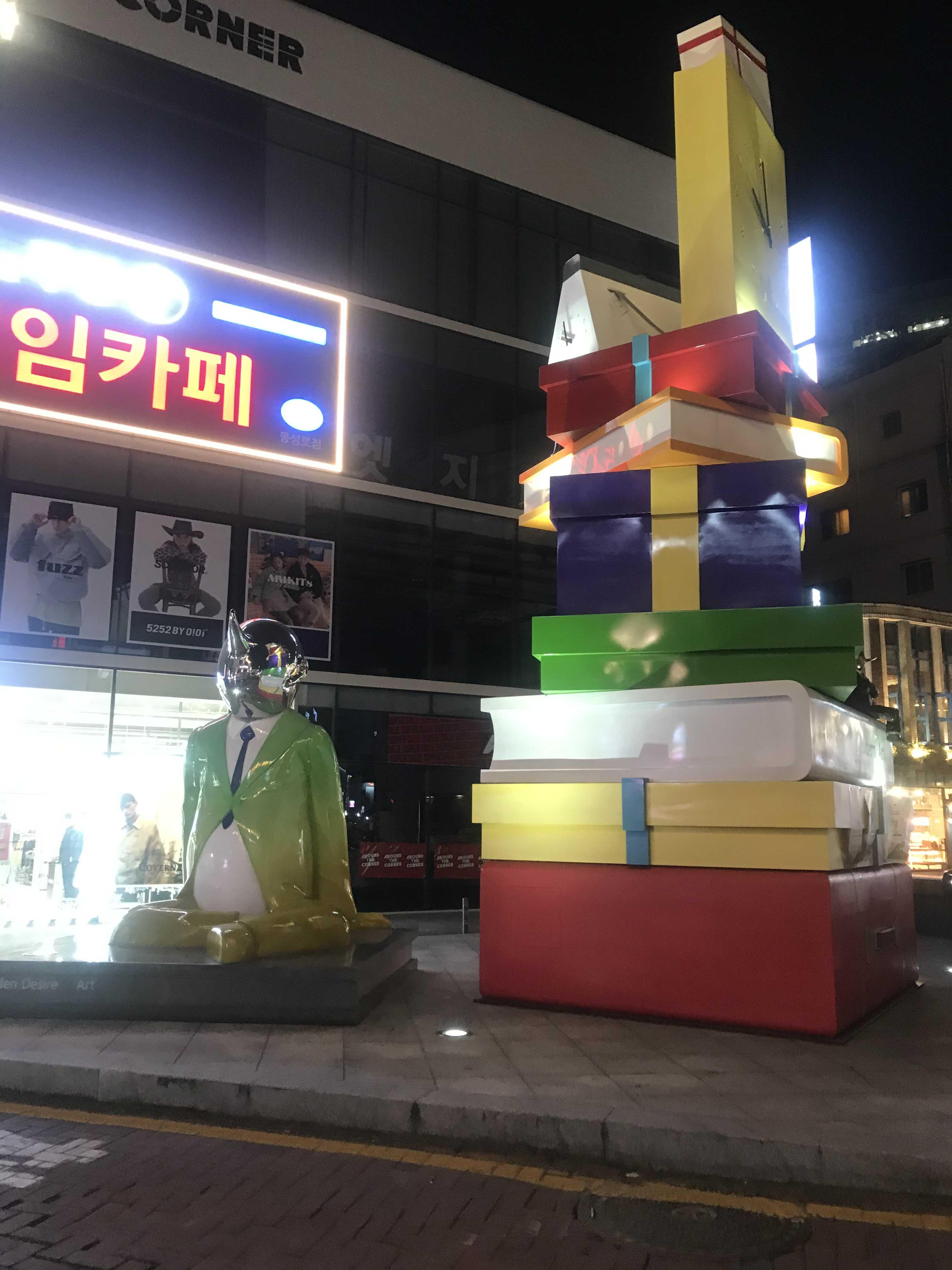 이 조형물은 항상 볼때마다 신기해요. 뭔가 마치 선물을 기다리고 있는 사람인가?아니면 회사원일수도 있겠네요. 어쨌든 참 재밌는 예술 작품이죠 ㅎㅎ