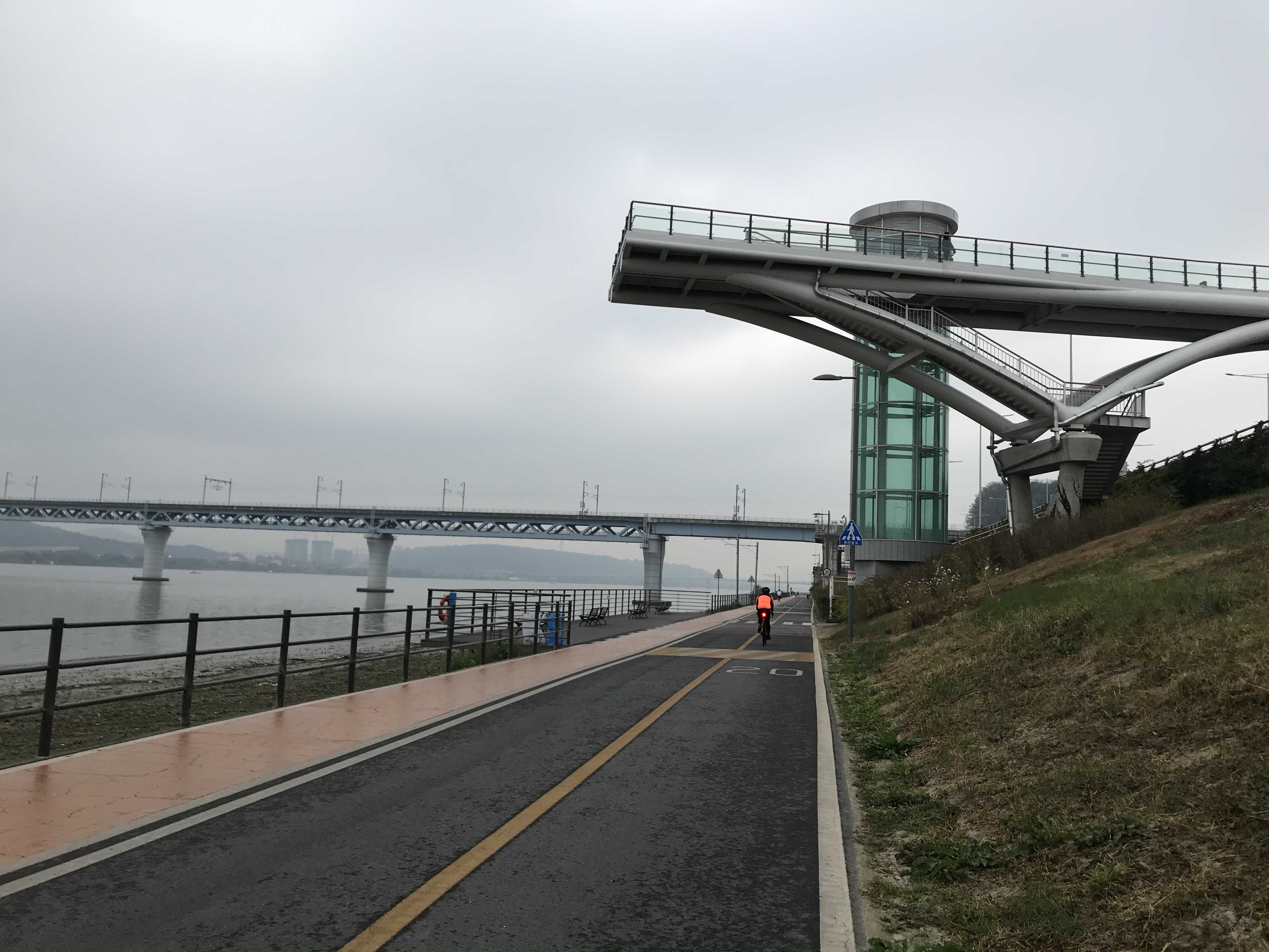 아침에는 약간 추웠어요. 자전거길이 너무 잘되어 있어서 간단한 운동이나 자전거 산책으로 추천해요.