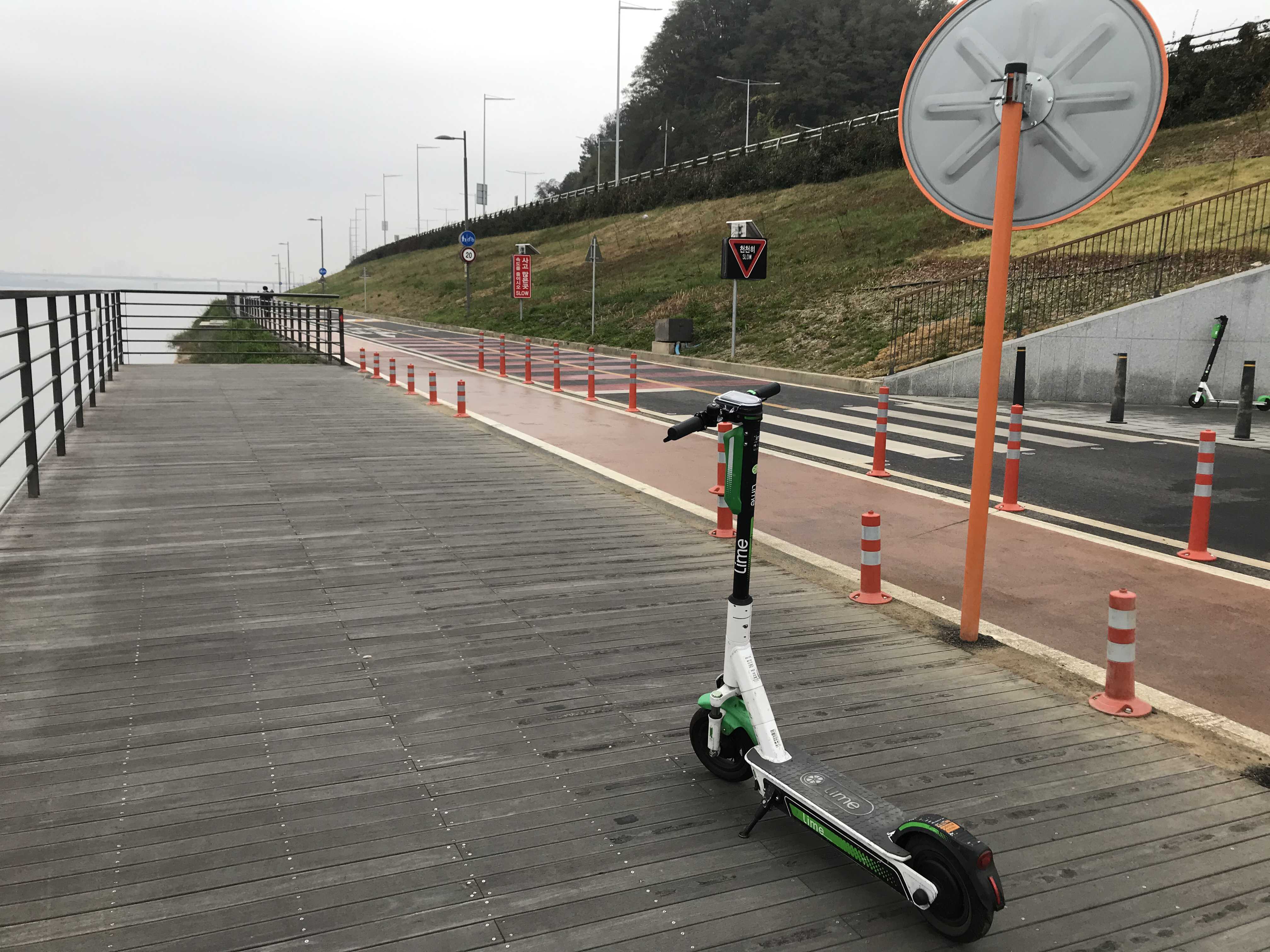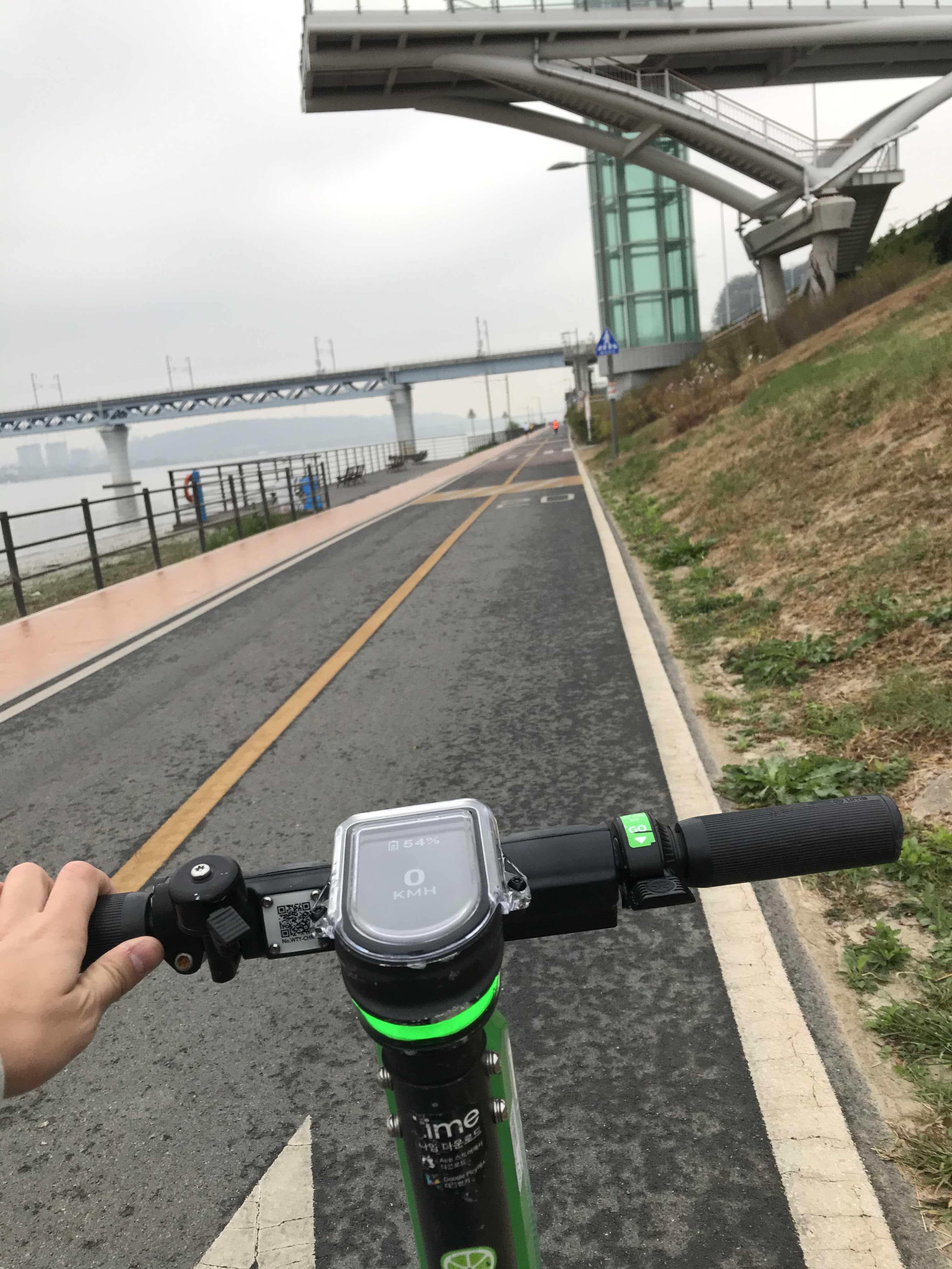 교통수단은 킥보드를 타고 갔습니다. 저는 라임이라는 킥보드 공유 서비스 어플을 이용했습니다. 대여 가격은 1분에 180원입니다. 킥보드 시속 20km/h 밖에 안 달려서 아쉬웠습니다. 그리고 약간의 진동을 느꼈어요.