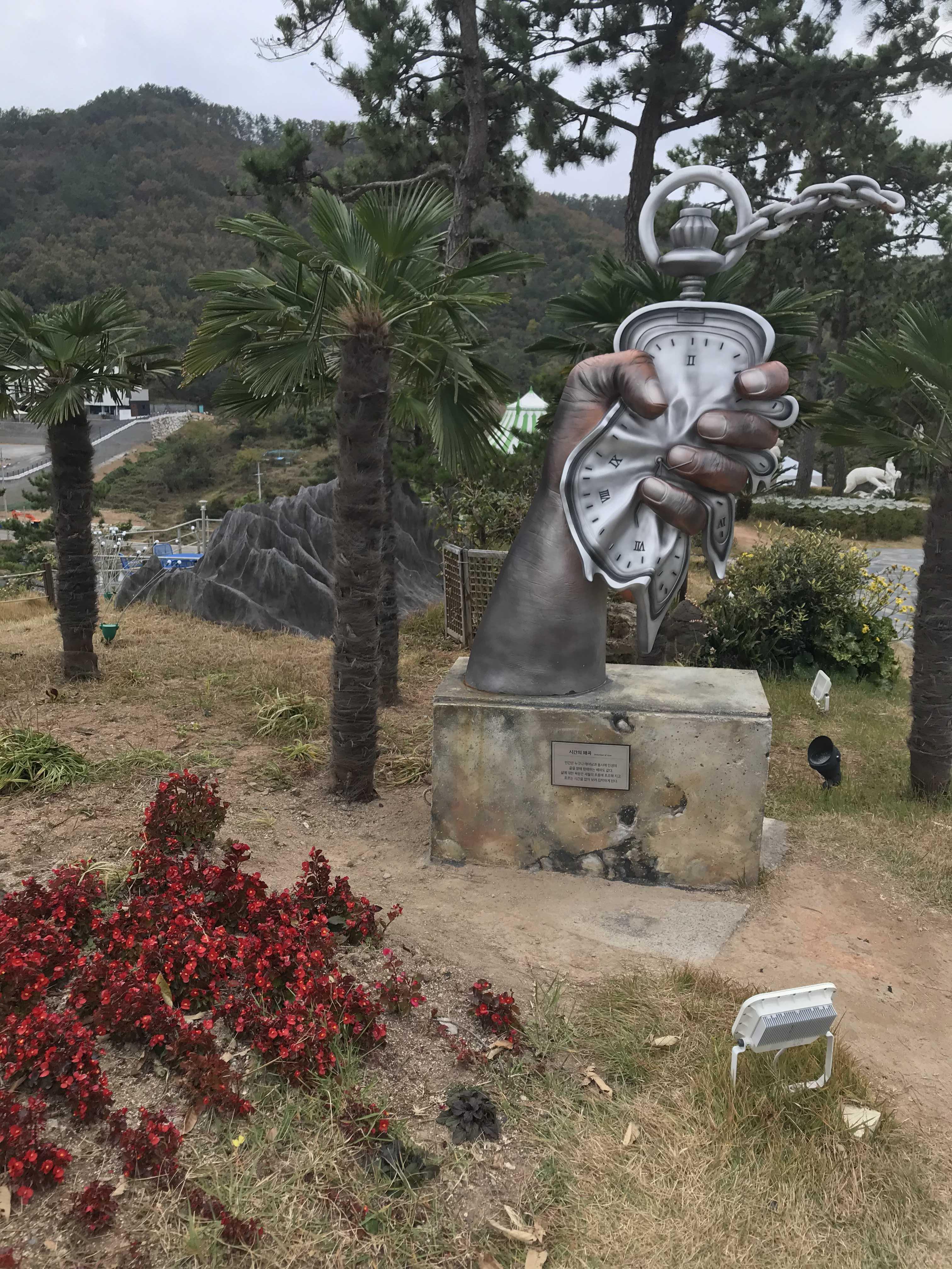 이 공원에서는 다양한 조각상들을 볼 수가 있고요. 이 조각상의 이름은 "시간의 왜곡"이에요