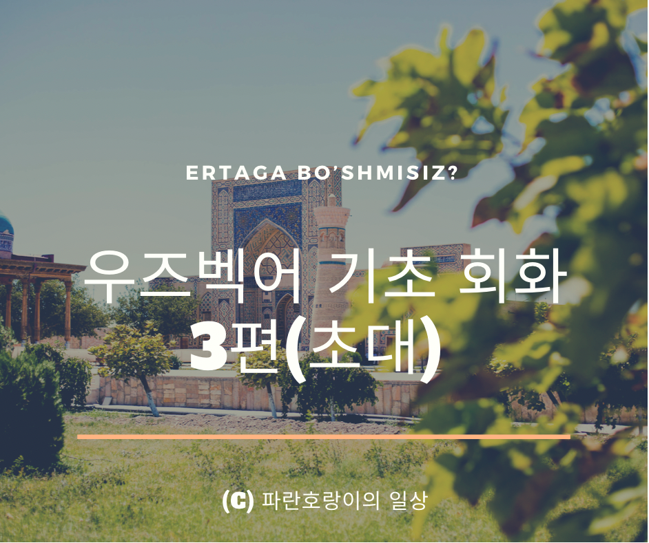 | 우즈벡어 기초 회화 1편 (인사) (1) | 2020.08.01 |