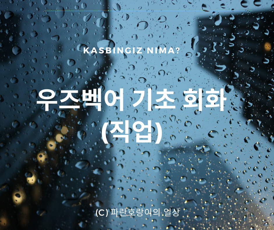 안녕하세요, 오늘은 직업/업무 주제로 우즈벡어 기초 회화 몇 가지를 공유해 볼게요. 직업은 우즈벡어로 캬스브 (Kasb)라고 합니다.