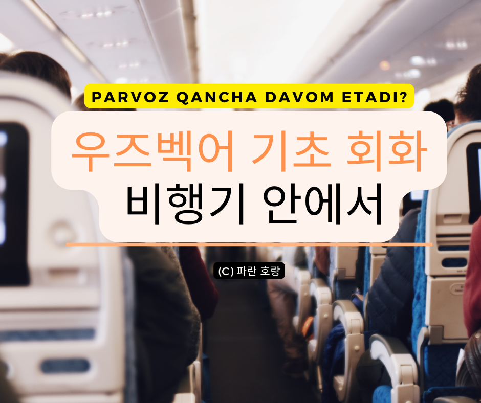 안녕하세요 여러분, 날씨 요즘 너무 덥죠? 다들 휴가 잘 다녀오고 계신가요? 오늘은 여행하러 비행기를 탈 때 사용할 수 있는 우즈벡어 표현들을 알아볼 거예요.