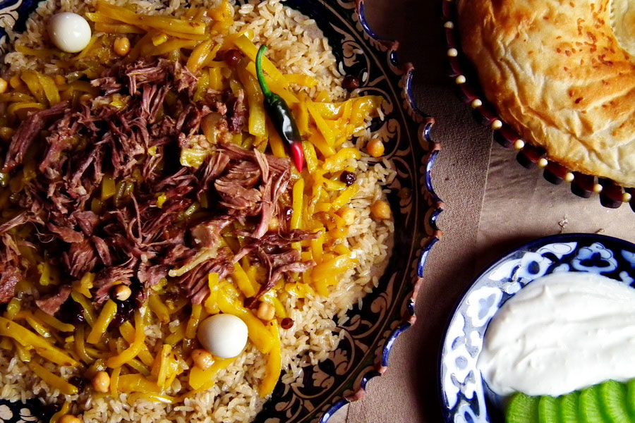 점심 시간에는 Osh Markazi, 즉 플로프 센터로 가시면 일반 레스토랑은 아니지만, 아름다운 Lagan에서 풍성하고 맛있는 음식을 대량으로 제공합니다. 이곳은 6시 이후에는 폐점되므로 미리 계획해두세요. 플로프 센터에서는 아치크 추추크 샐러드와 신선한 빵, 빠질 수 없는 홍차를 주문할 수 있습니다.