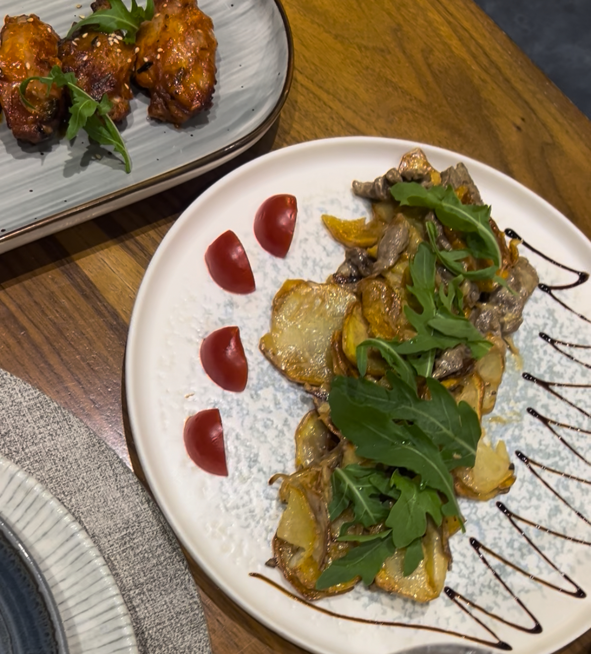 이거는 Myaso po Domashnemu 라는 고기 요리예요. 소고기하고 감자튀김인데 정말 맛있었어요.