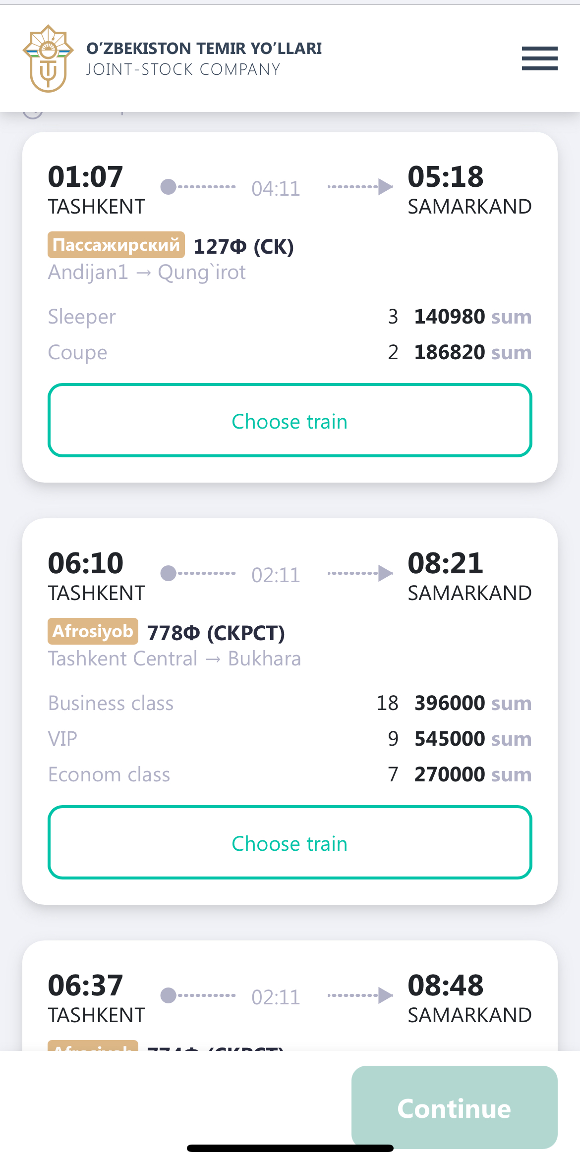 우즈베키스탄 기차는 가격도 합리적이고 여정도 편안해서 장거리 여행자에게 매우 좋은 교통수단입니다. 여행 전에 미리 온라인으로 예약하고, 여유 있게 도착해서 멋진 여정을 즐겨보세요! 감사합니다.