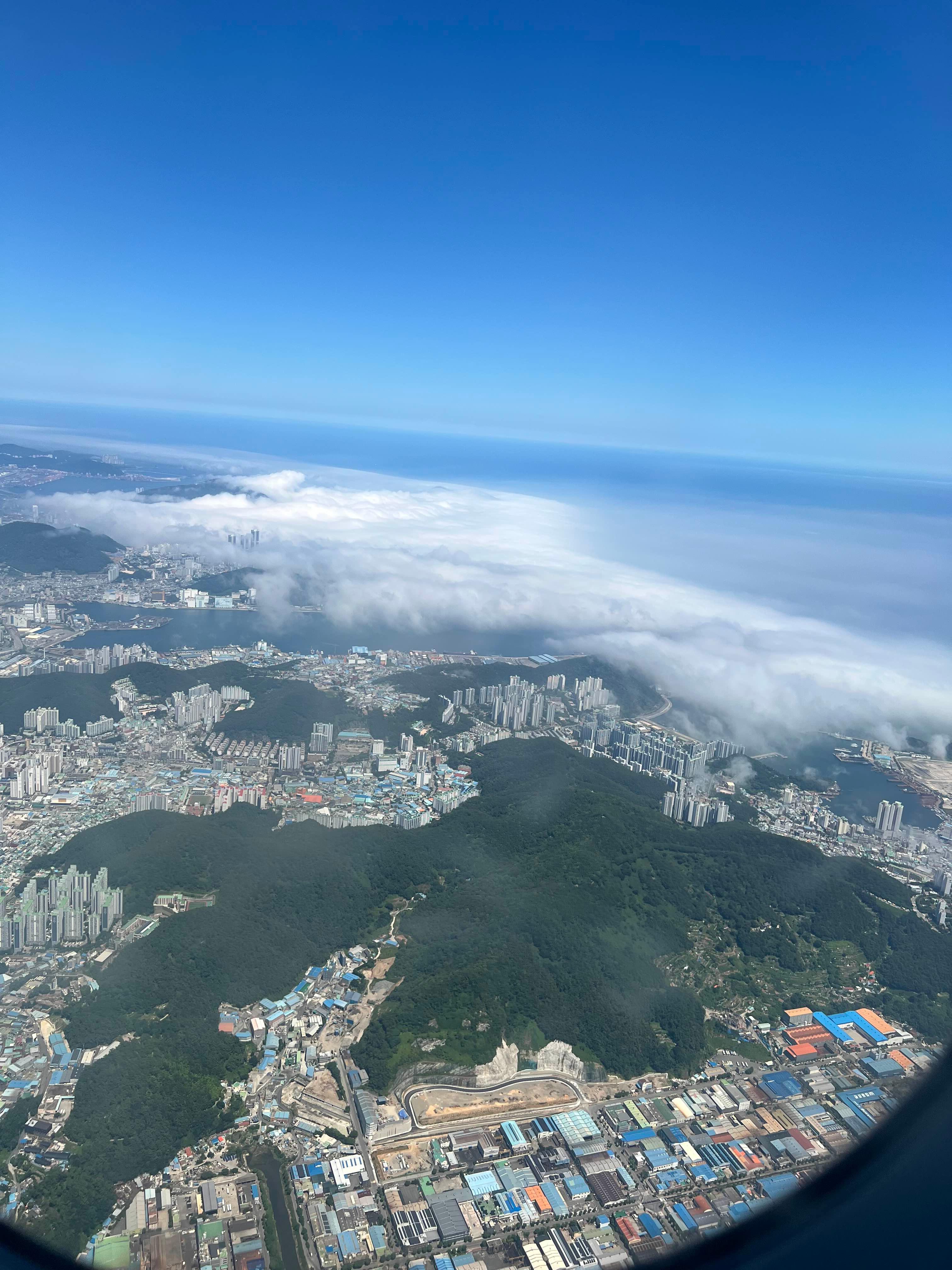 비행기 이륙 후 창밖을 봤는데, 정말 감탄이 나왔습니다.
