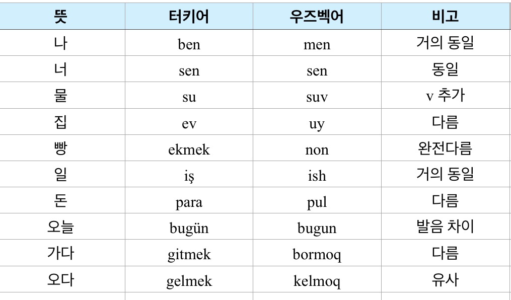 “터키어랑 우즈벡어 비슷해요?”