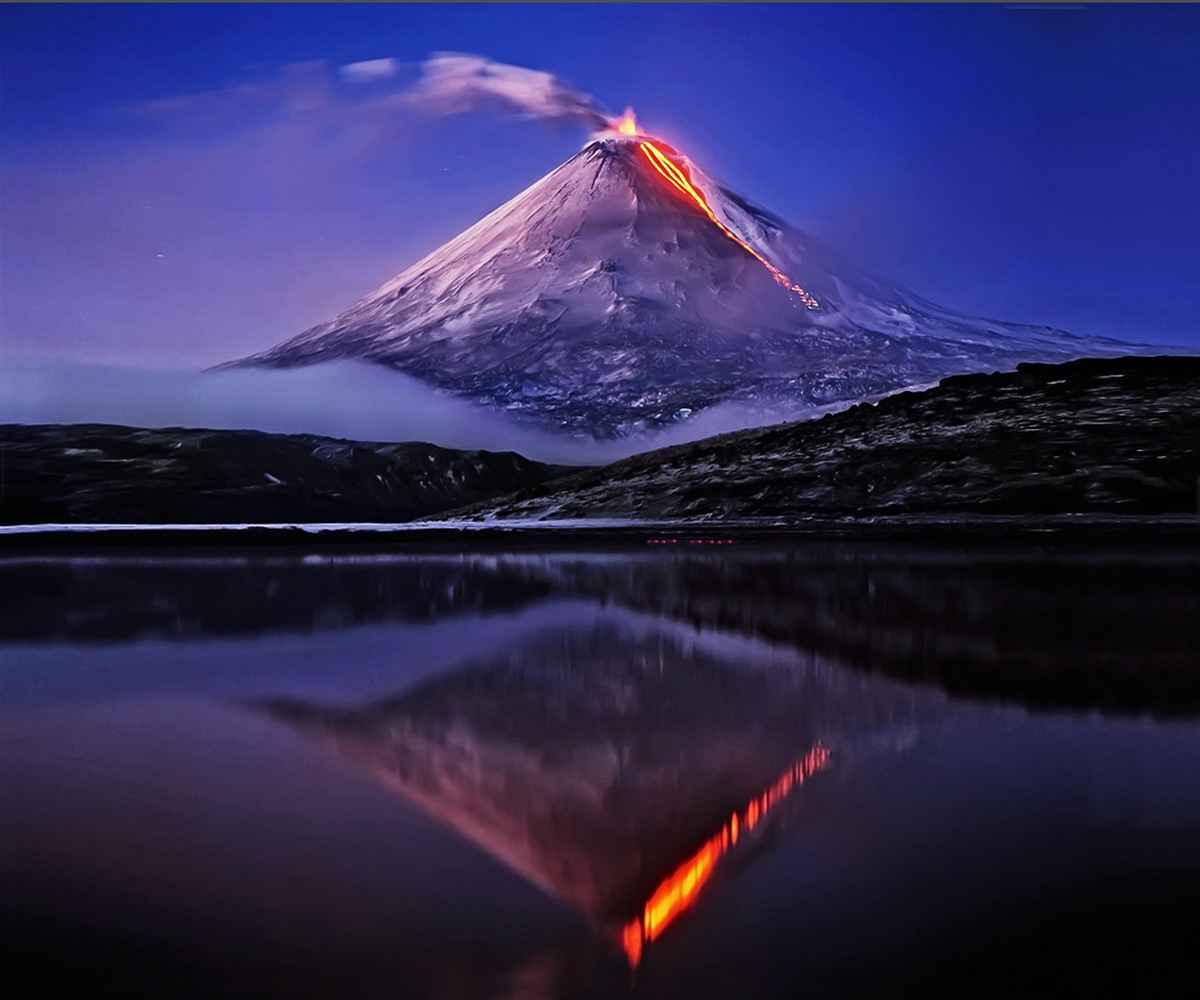 러시아에는 세계에서 가장 큰 활화산 인 Klyuchevskaya Sopka가 있습니다. 높이는 4 킬로미터 850 미터입니다. 그는 8km의 화산재 기둥을 던졌습니다. 각각의 분화로 그는 더 높아진다. Kluchevskaya Sopka 화산은 지난 7 천년 동안 폭발했습니다.