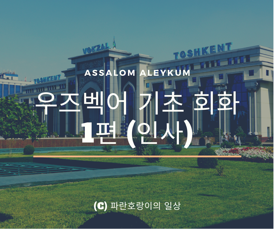 안녕하세요 파란 호랑이입니다. 오늘부터 우즈벡어 기초 회화를 배워볼 텐데요. 첫 편에서는 우즈벡어로 인사하는 표현을 배워볼 겁니다. 자 시작하겠습니다.